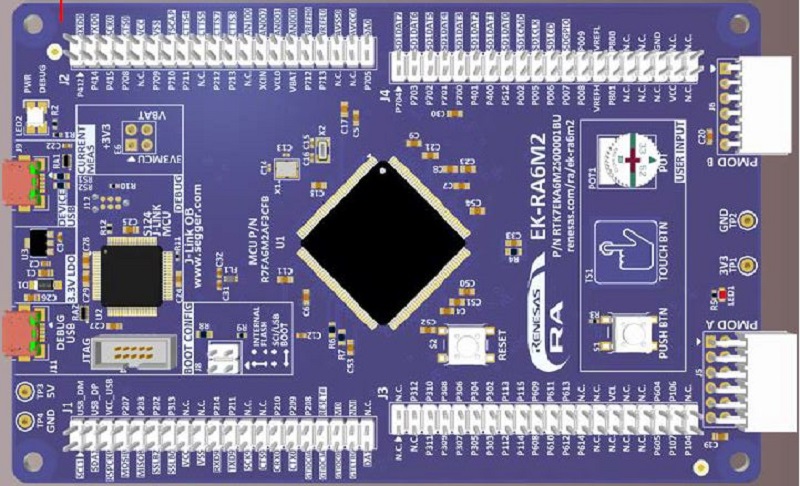 The Renesas EK-RA6M2 board.
